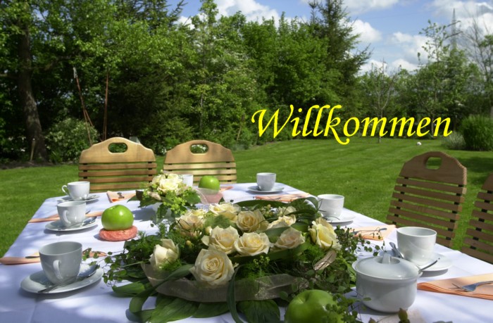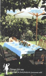 geschmückten Sommertafel im idyllischen, fränkischen Bauerngarten.